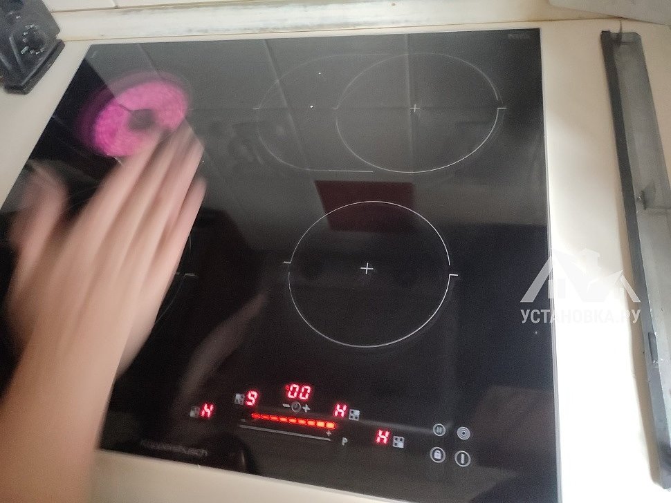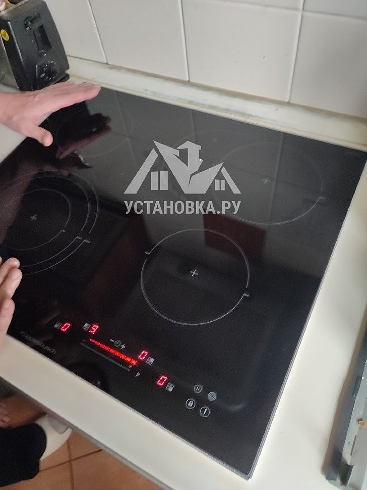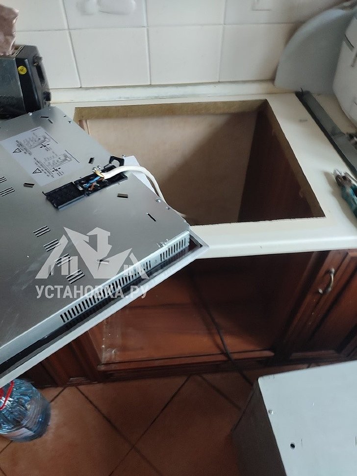- Монтаж варочной панели в готовый проём ( У Вас должен быть готов вырез в столешнице под варочную панель)