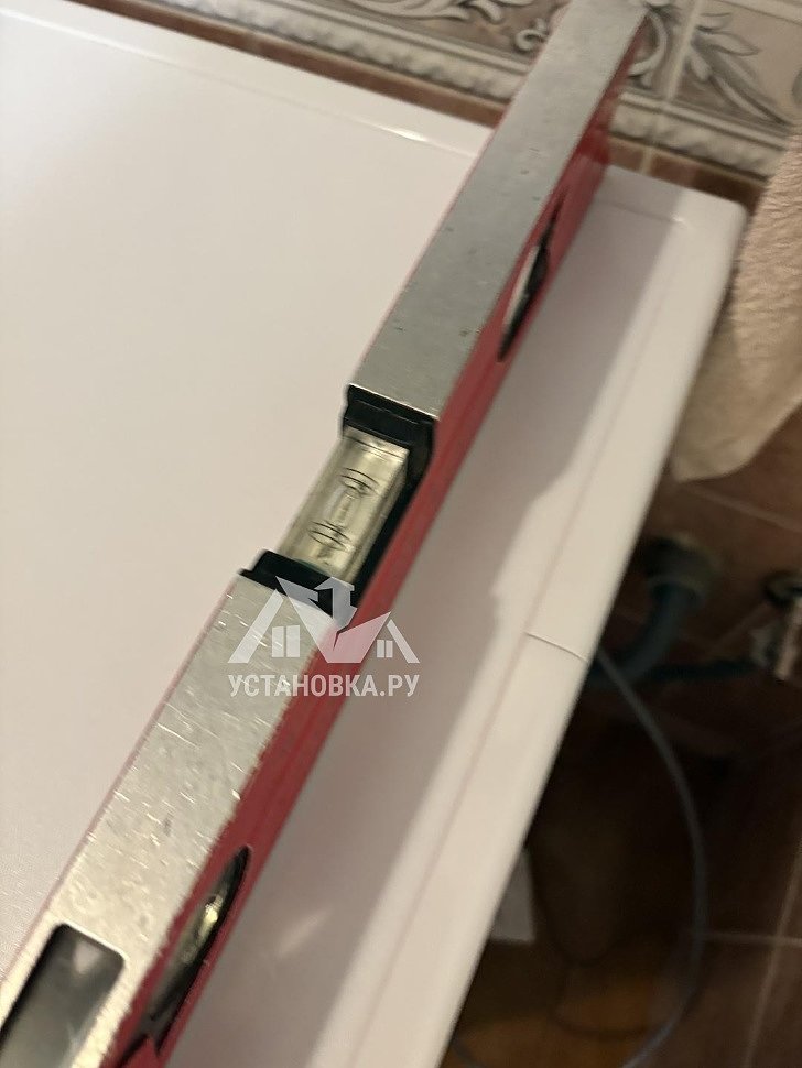 - Снятие транспортировочных креплений у стиральной машины, выравнивание по уровню.