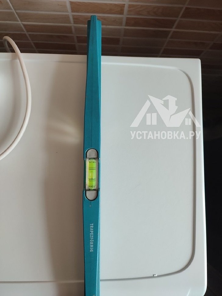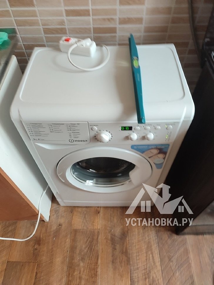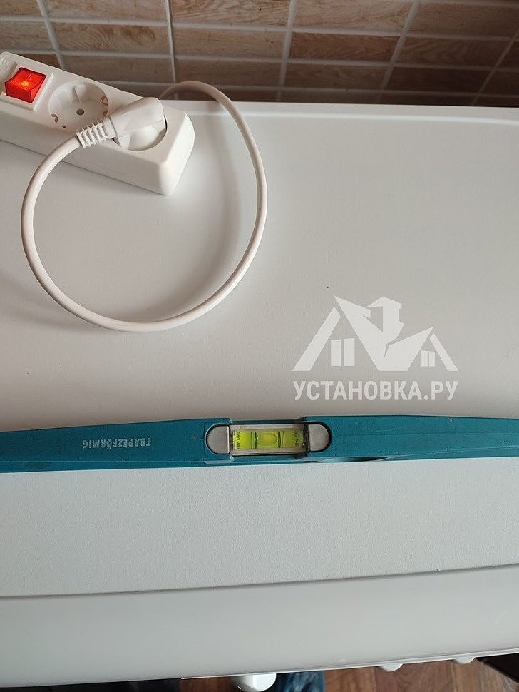 - Снятие транспортировочных креплений у стиральной машины, выравнивание по уровню.