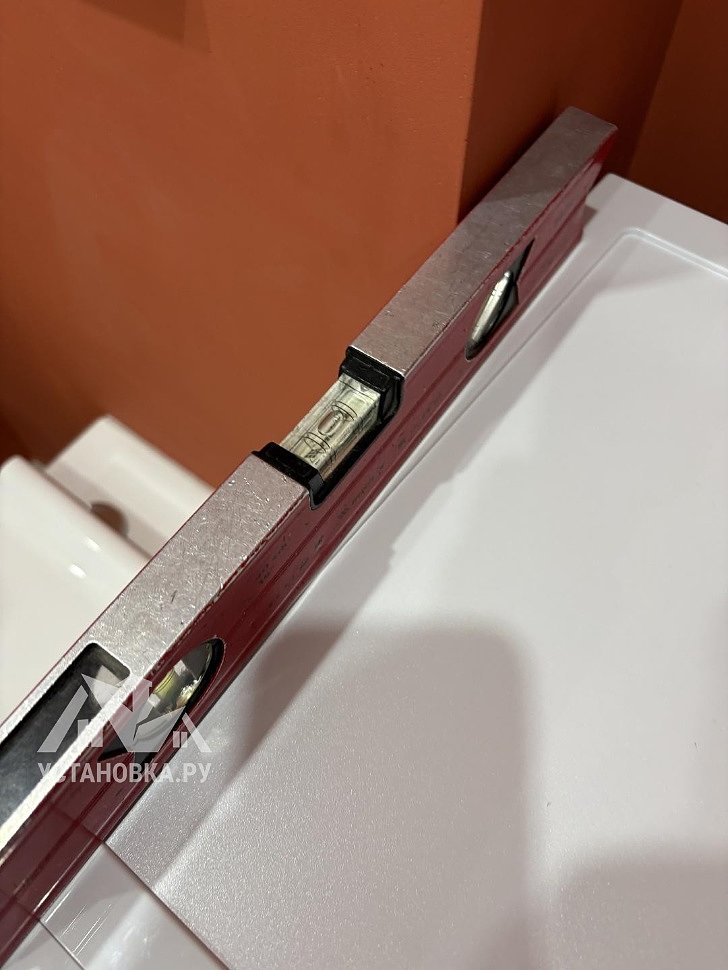- Снятие транспортировочных креплений у стиральной машины, выравнивание по уровню.