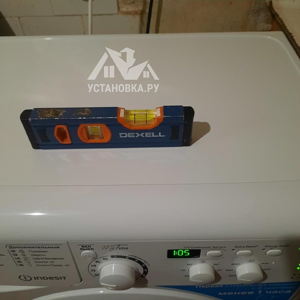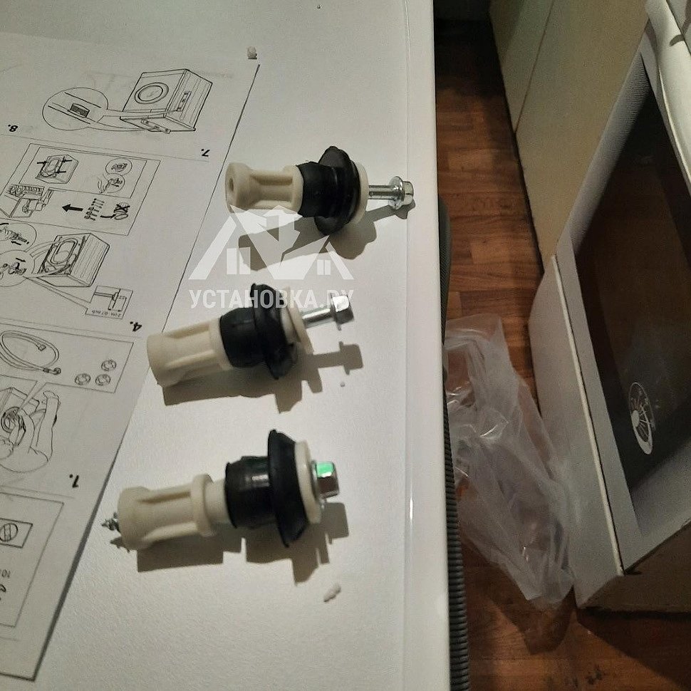 - Снятие транспортировочных креплений у стиральной машины, выравнивание по уровню.