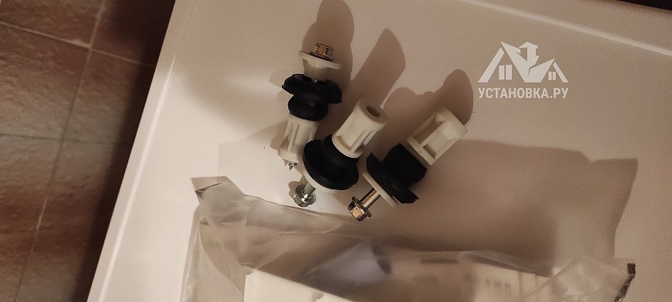 - Снятие транспортировочных креплений у стиральной машины, выравнивание по уровню.