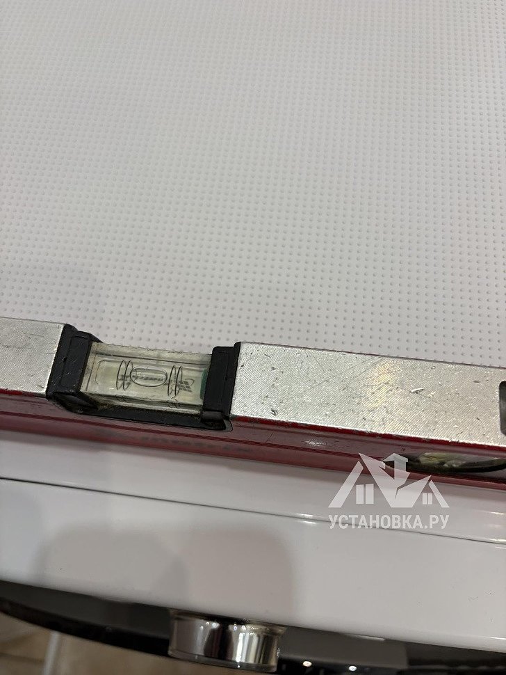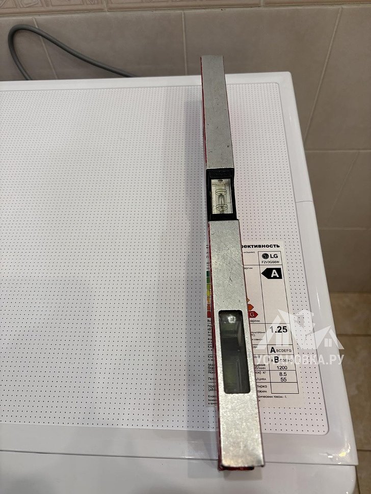 - Снятие транспортировочных креплений у стиральной машины, выравнивание по уровню.