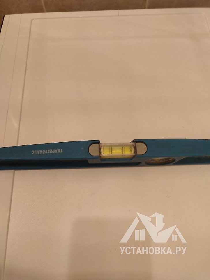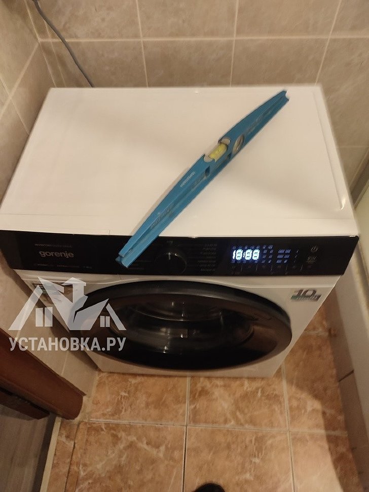 - Снятие транспортировочных креплений у стиральной машины, выравнивание по уровню.