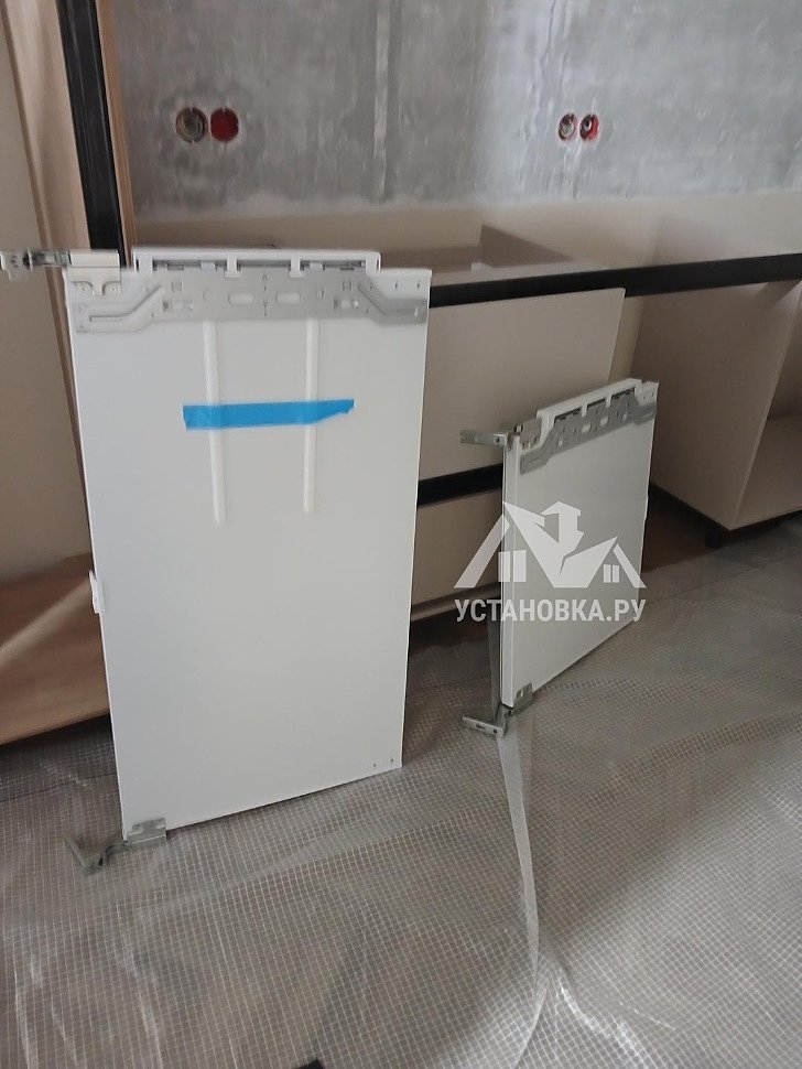 - Демонтаж дверей встроенного холодильника.