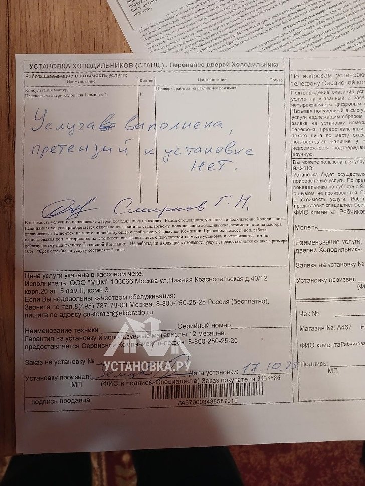 Перевес дверей на холодильнике "сайд бай сайд"шт. 3000.00 p.В данную работу входит: