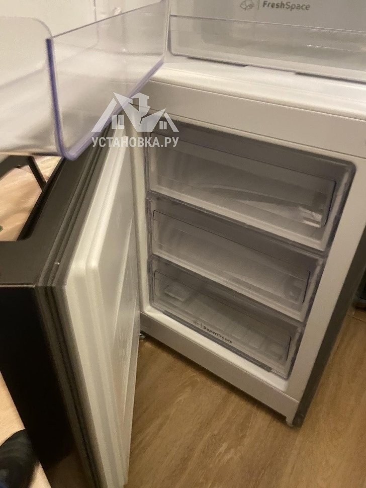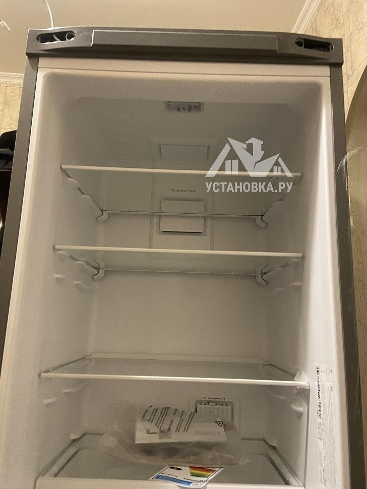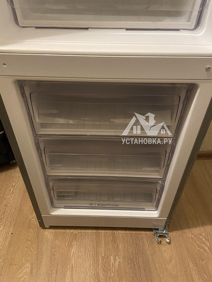 - Демонтаж либо установка нижней полки под холодильник. Для выставления холодильника по высоте.