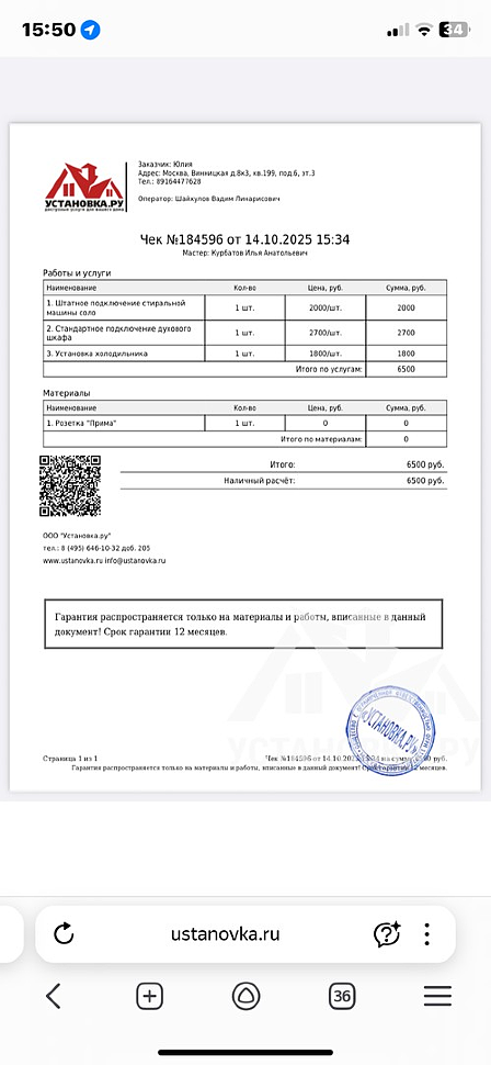 11. Очистка рабочей зоны и уборка мусора (за исключением упаковки товара), оставшегося после установки;