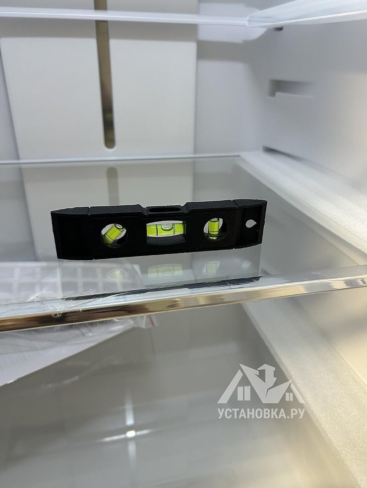 - Демонтаж либо установка нижней полки под холодильник. Для выставления холодильника по высоте.