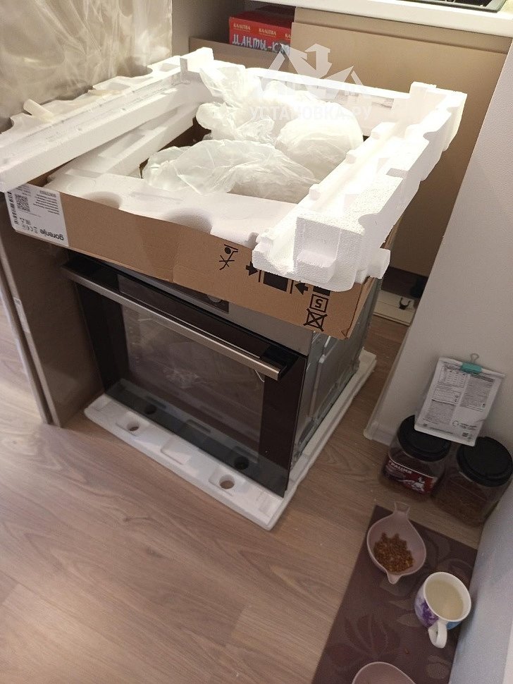 - Установка духового шкафа в подготовленную мебельную нишу.