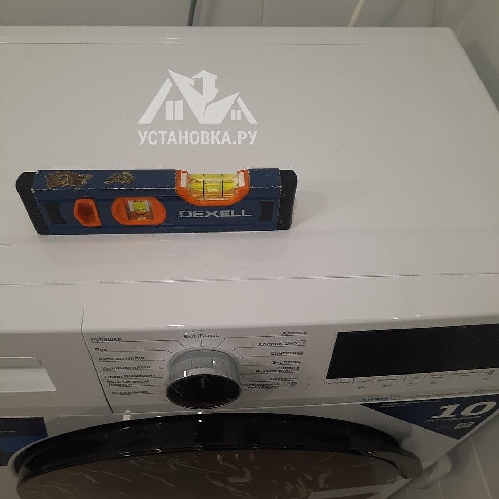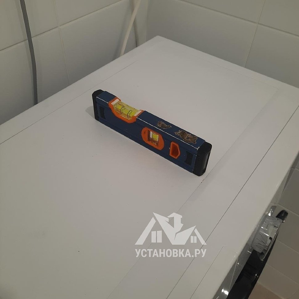 - Снятие транспортировочных креплений у стиральной машины, выравнивание по уровню.
