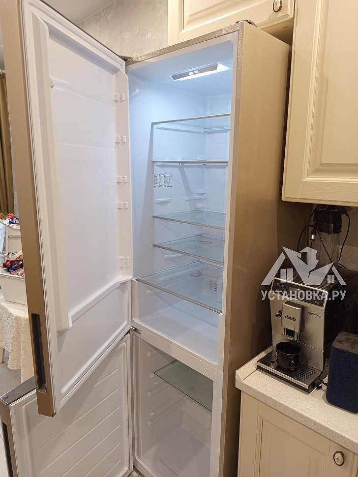 - Навес фасадов на холодильник с их последующей регулировкой.