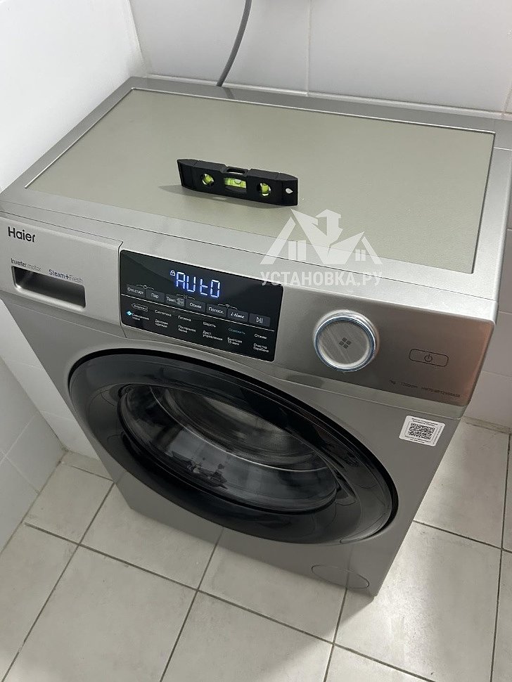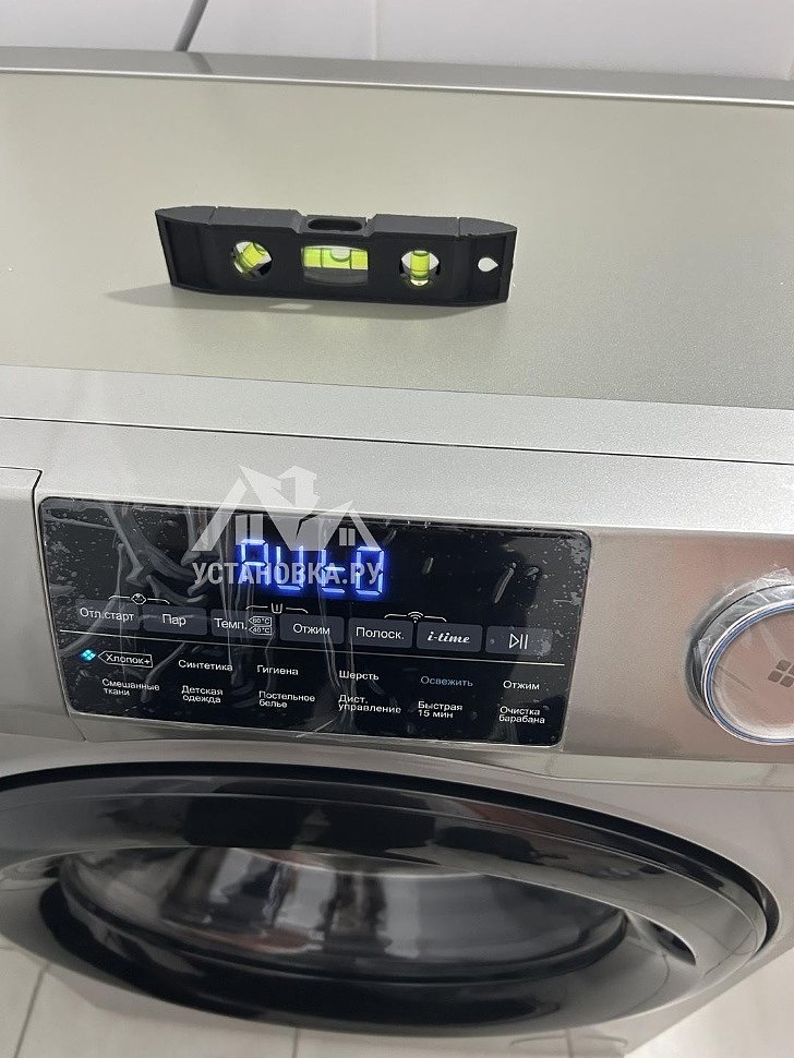 - Снятие транспортировочных креплений у стиральной машины, выравнивание по уровню.