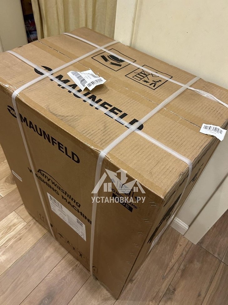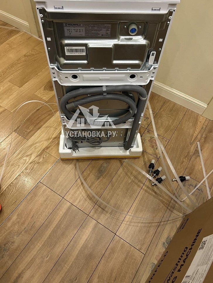 - Снятие транспортировочных креплений у стиральной машины, выравнивание по уровню.