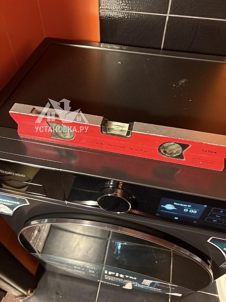 - Снятие транспортировочных креплений у стиральной машины, выравнивание по уровню.