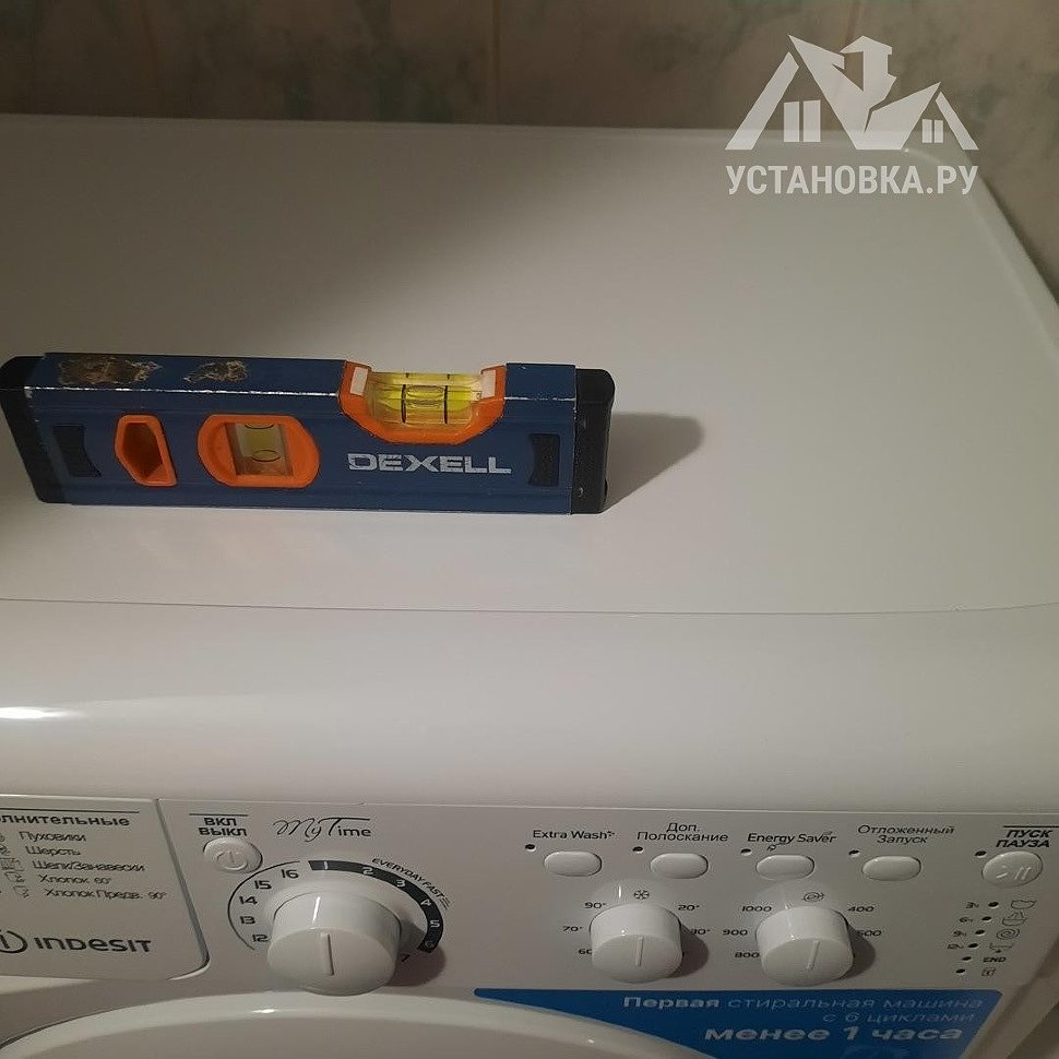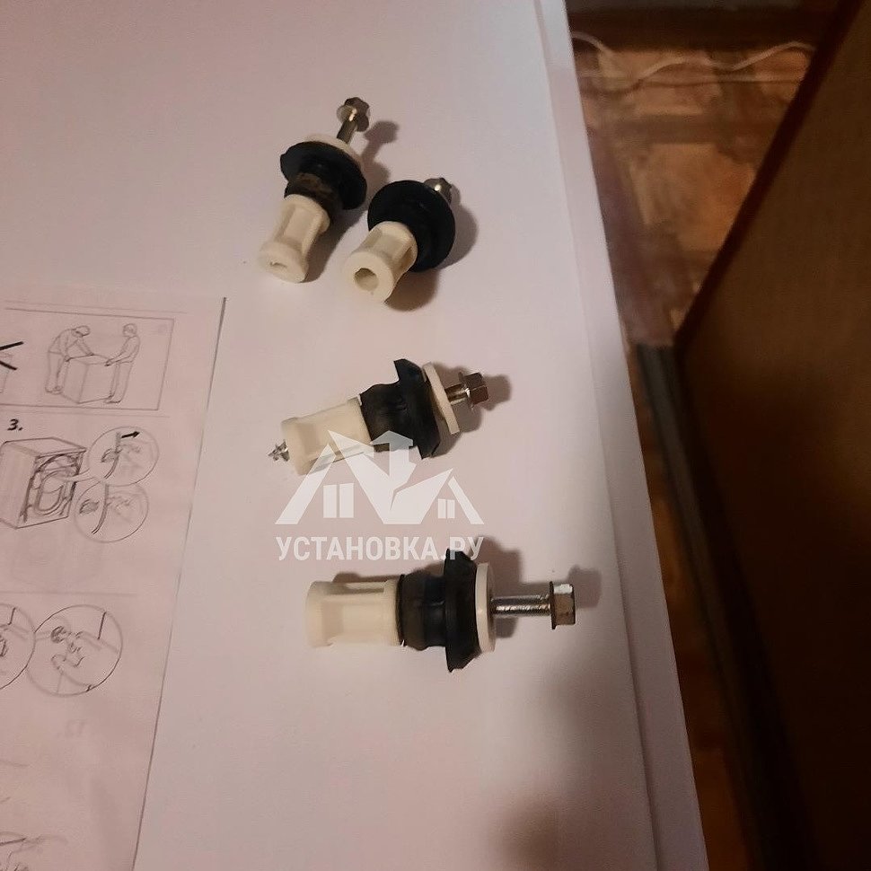 - Снятие транспортировочных креплений у стиральной машины, выравнивание по уровню.