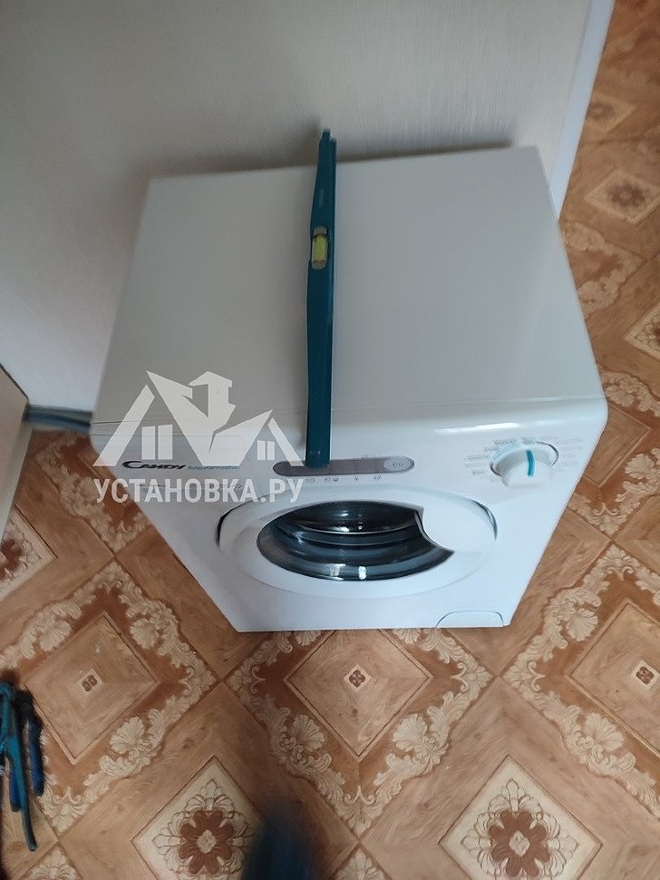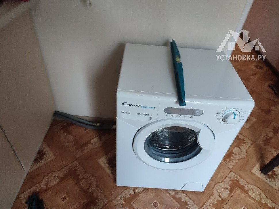 - Снятие транспортировочных креплений у стиральной машины, выравнивание по уровню.
