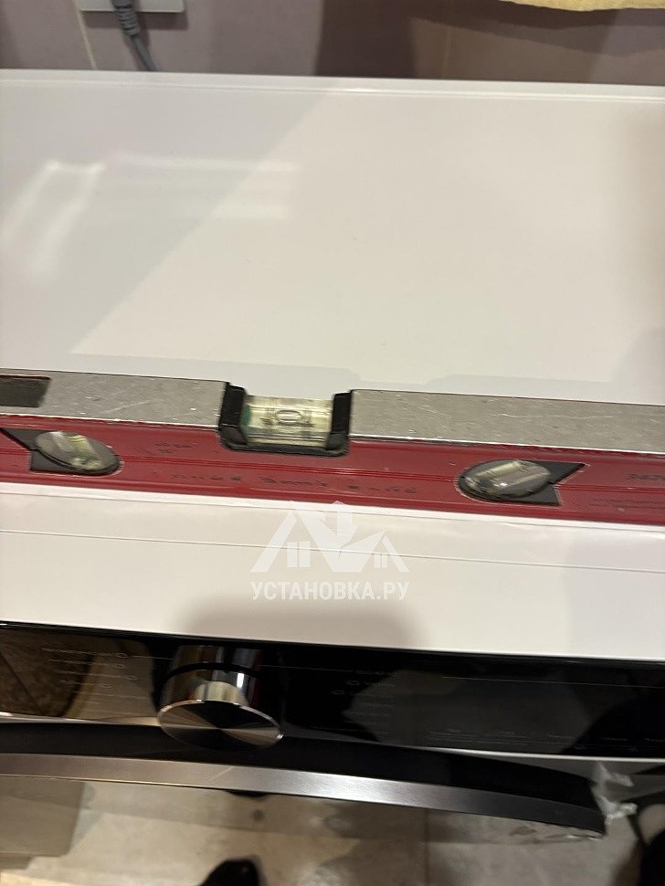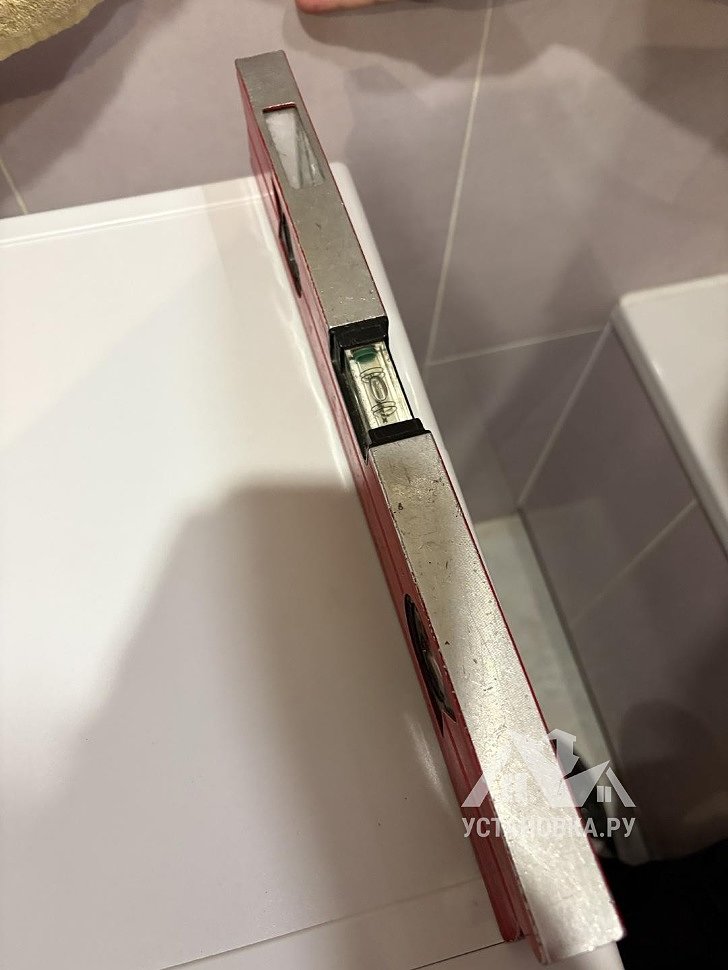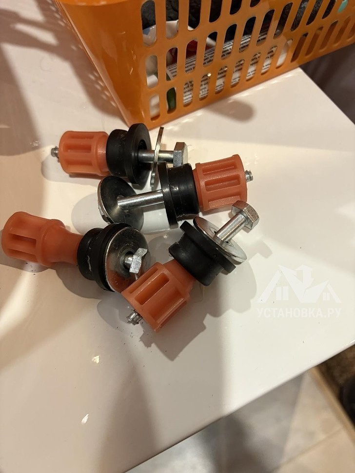 - Снятие транспортировочных креплений у стиральной машины, выравнивание по уровню.