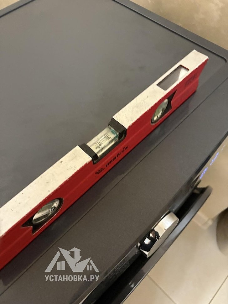 - Снятие транспортировочных креплений у стиральной машины, выравнивание по уровню.