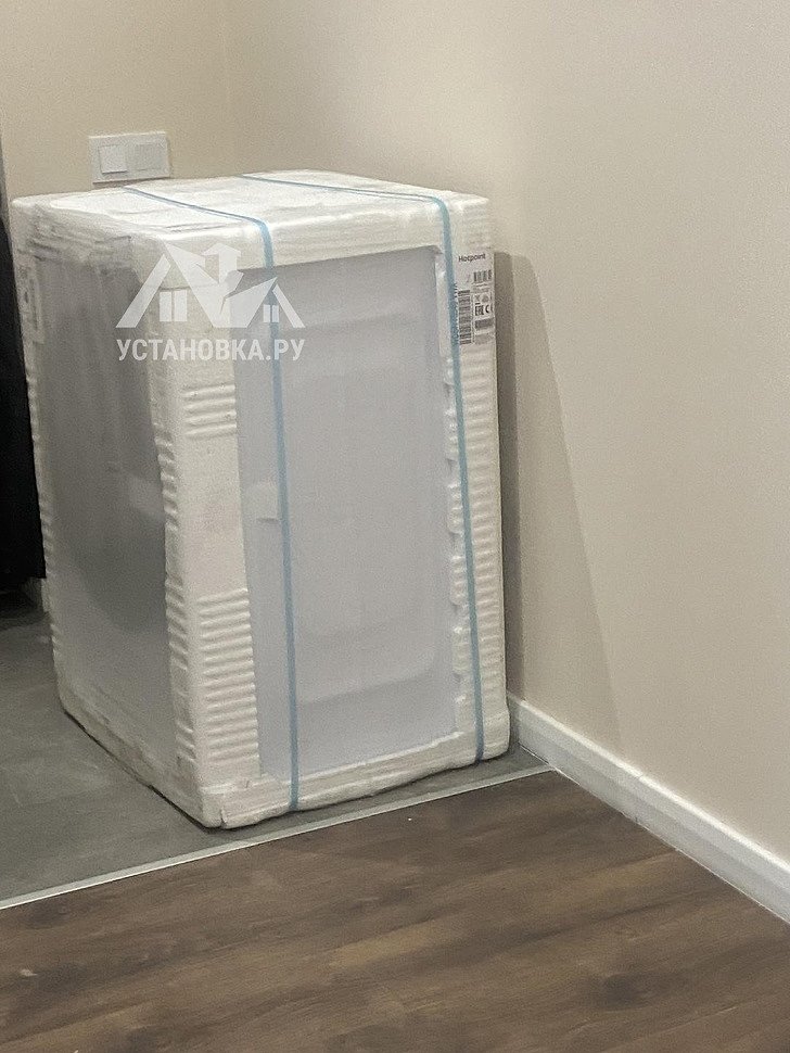- Снятие транспортировочных креплений у стиральной машины, выравнивание по уровню.