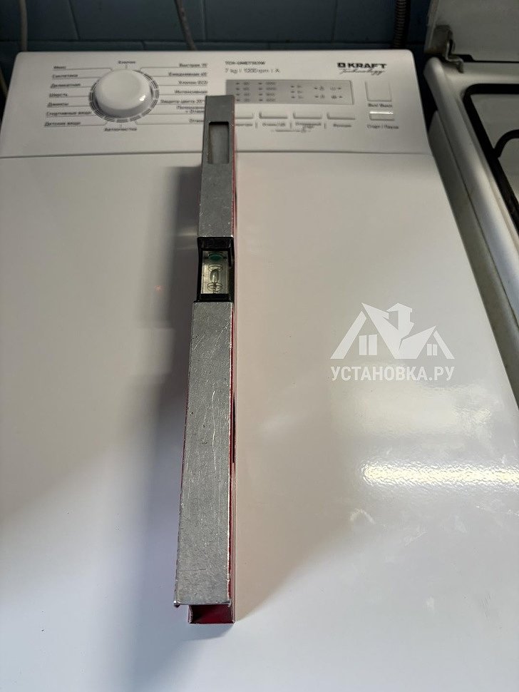 - Снятие транспортировочных креплений у стиральной машины, выравнивание по уровню.