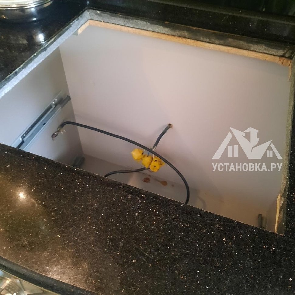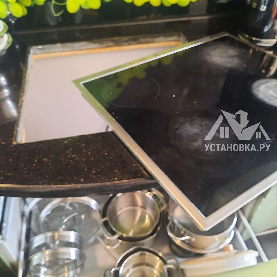 - Монтаж варочной панели в готовый проём ( У Вас должен быть готов вырез в столешнице под варочную панель)