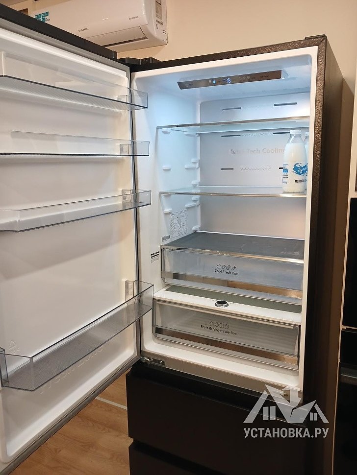 - Распаковка холодильника и установка в указанное место.