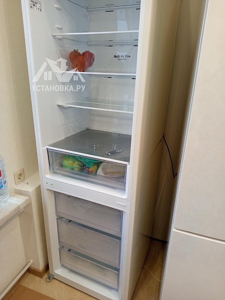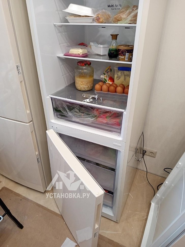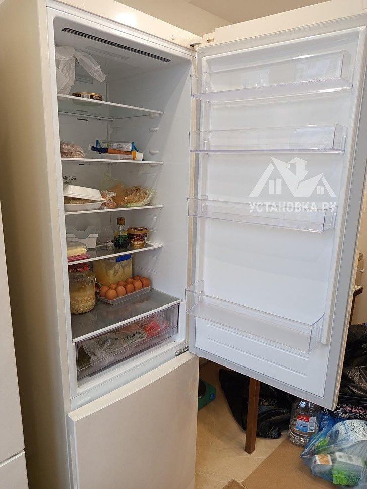 - Навес фасадов на холодильник с их последующей регулировкой.