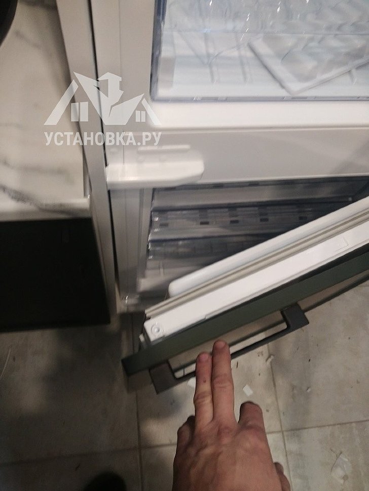 - Демонтаж дверей встроенного холодильника.
