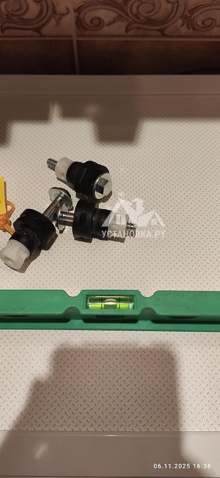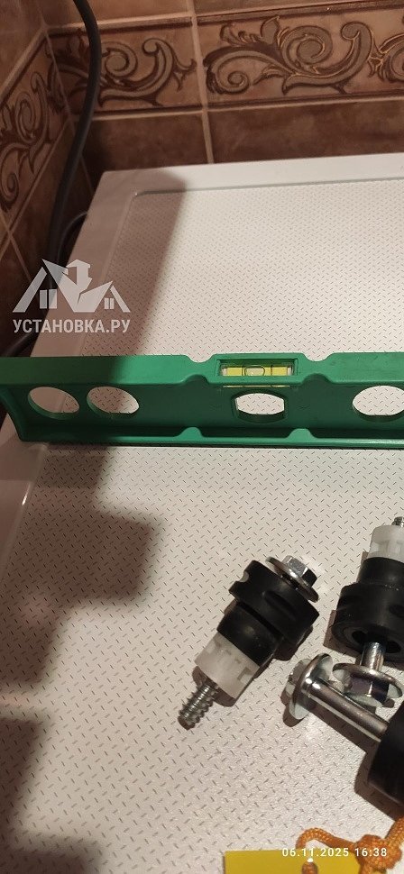 - Снятие транспортировочных креплений у стиральной машины, выравнивание по уровню.