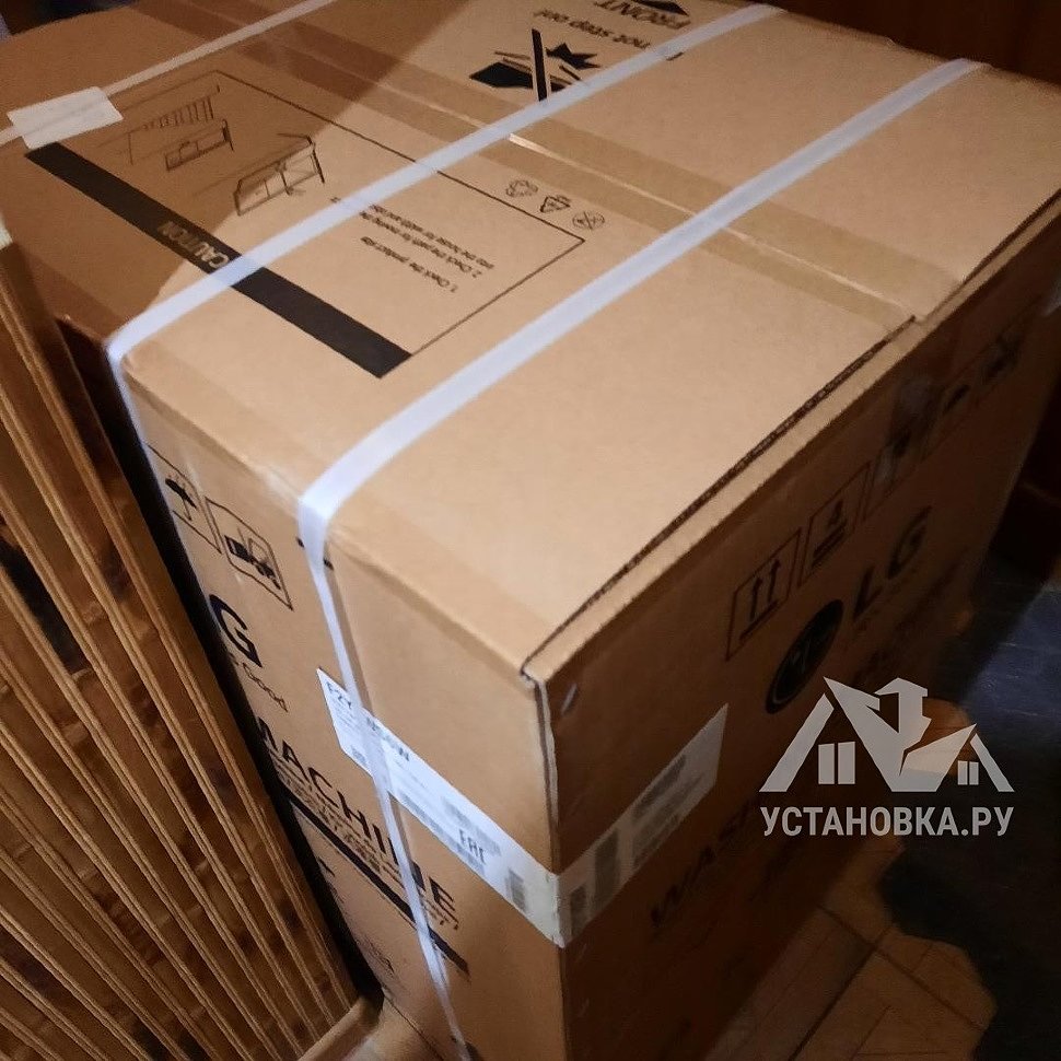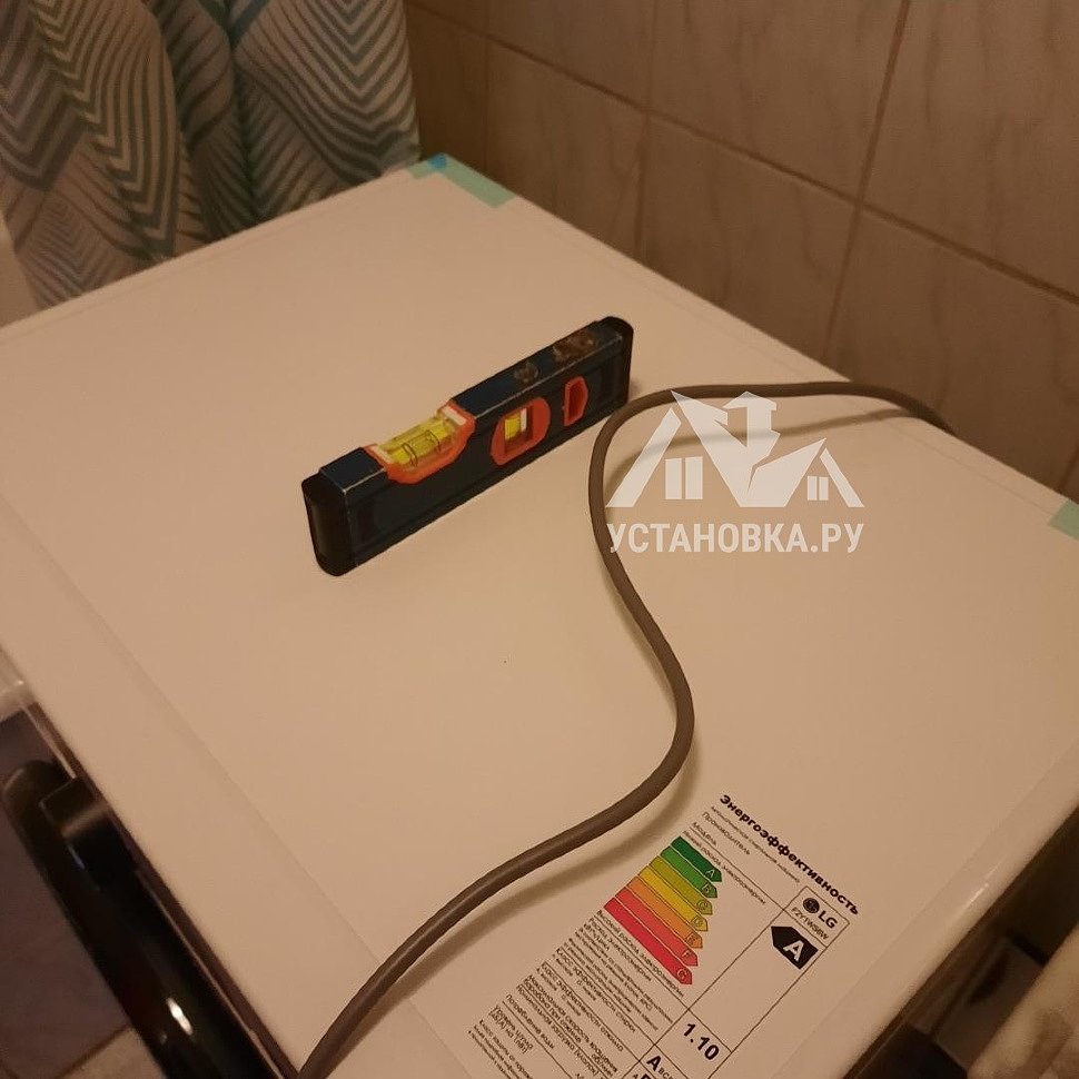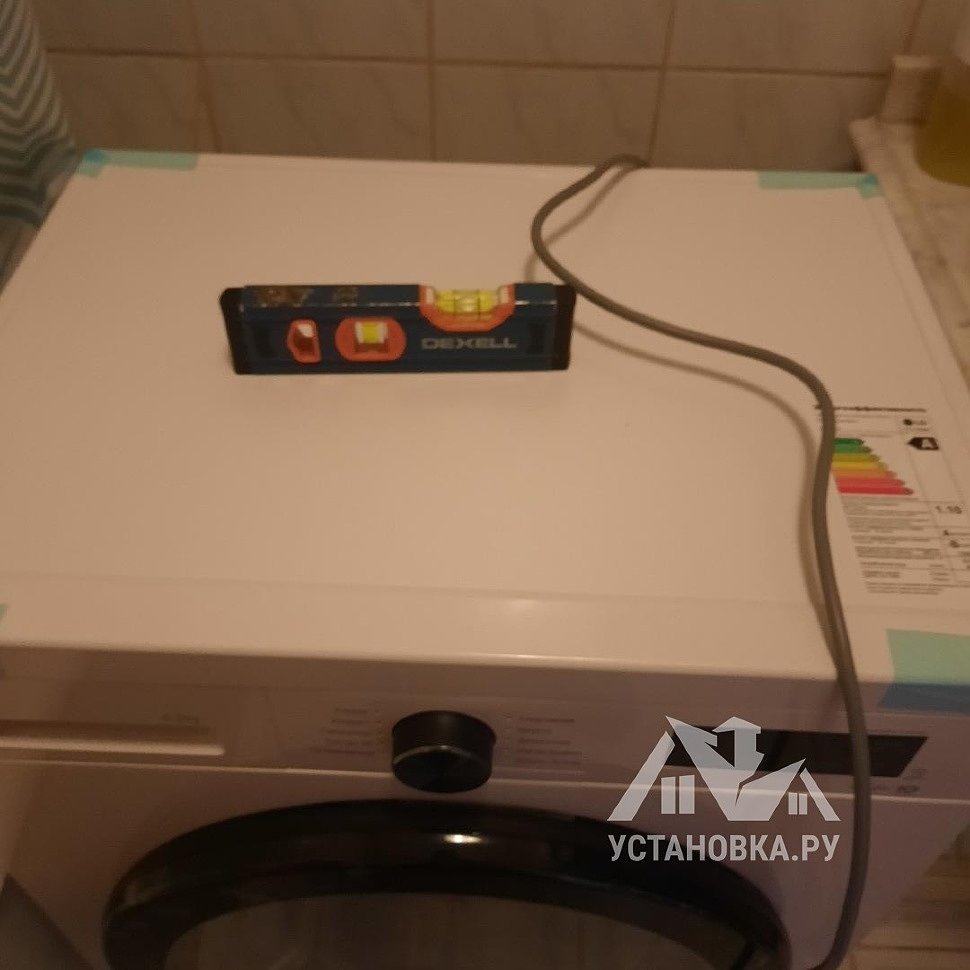 - Снятие транспортировочных креплений у стиральной машины, выравнивание по уровню.