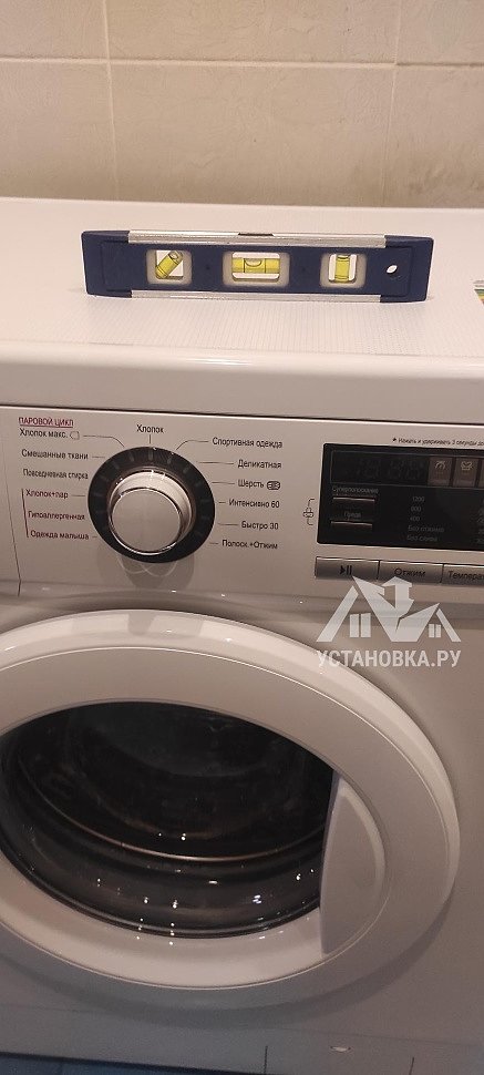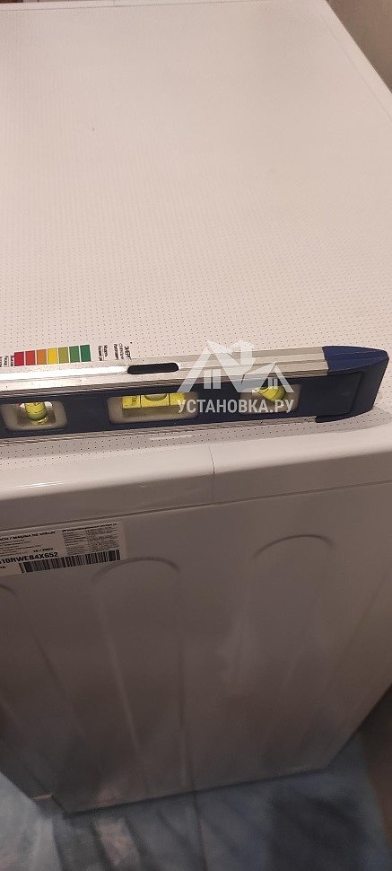 - Снятие транспортировочных креплений у стиральной машины, выравнивание по уровню.