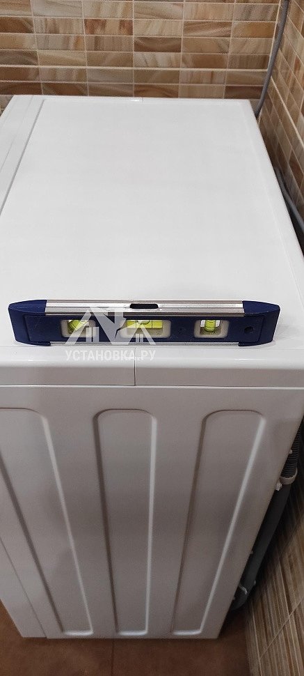 - Снятие транспортировочных креплений у стиральной машины, выравнивание по уровню.