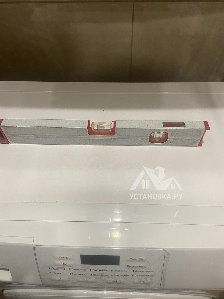 - Снятие транспортировочных креплений у стиральной машины, выравнивание по уровню.