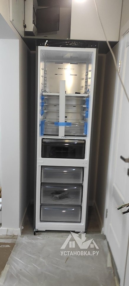 - Установка холодильника в мебельный шкаф.