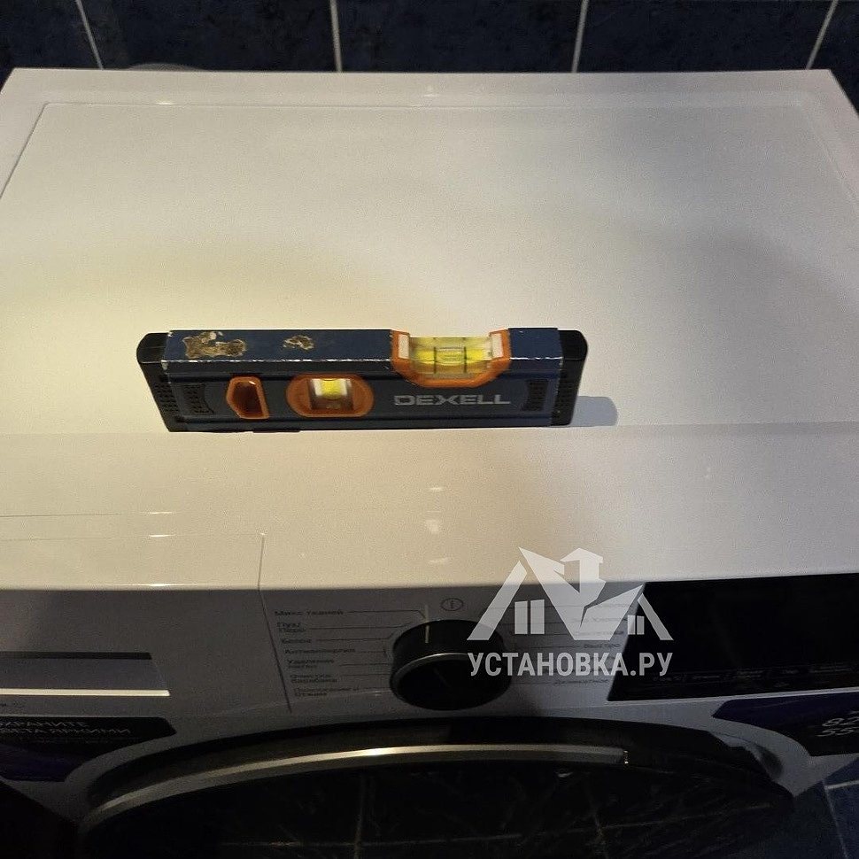 - Снятие транспортировочных креплений у стиральной машины, выравнивание по уровню.