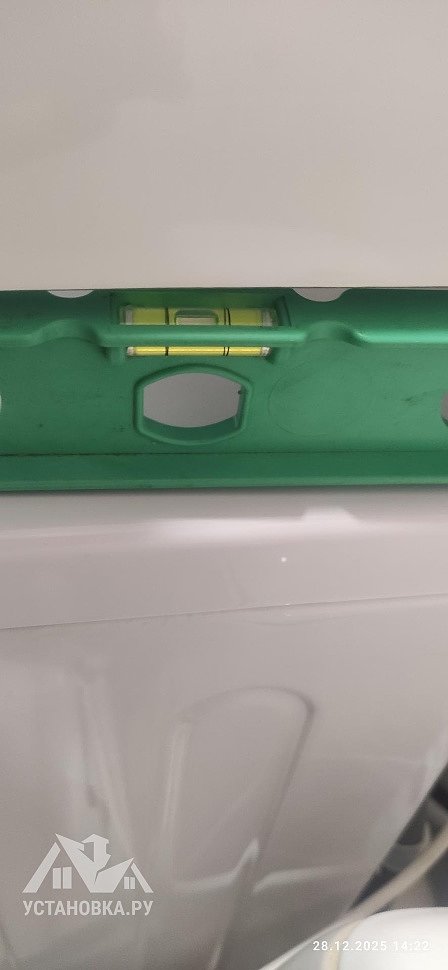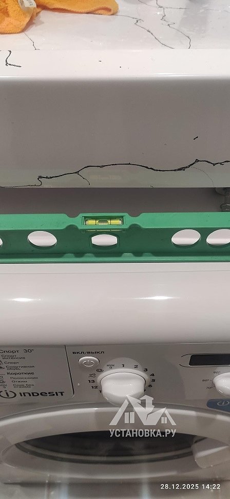 - Снятие транспортировочных креплений у стиральной машины, выравнивание по уровню.