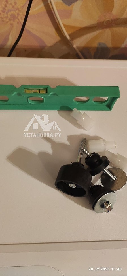 - Снятие транспортировочных креплений у стиральной машины, выравнивание по уровню.